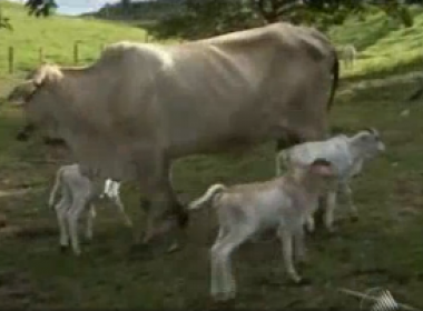 Uma vaca concebeu três bezerros de uma só gestação no município de Itabela, extremo sul da Bahia, e o caso raro despertou a atenção de moradores e especialistas, de acordo com informações da TV Bahia. Segundo técnicos da Adab - Agência de Defesa Agropecuária da Bahia, há apenas três casos como esse registrados no Brasil. Nasceram dois machos e uma fêmea. Chamada pelo dono de Seda Branca, a vaca já teve outras duas gestações de apenas um filhote cada. O criador Vilemilton Caitité garante que não fez nenhum tipo de inseminação artificial. A gestação com o nascimento dos três bezerros valorizou o preço de venda da vaca. Segundo o proprietário, antes ela valia em média R$ 2,5 mil, mas, mesmo que o animal ainda não tenha sido colocado à venda, fazendeiros da região já ofereceram R$ 7 mil para ter a vaca no rebanho.