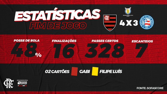 Com a vitória, o Rubro-Negro chegou a 48 pontos e agora é o vice-líder do Brasileirão, cinco ponto atrás do São Paulo e com um jogo a menos. Já o Bahia chegou à quinta derrota consecutiva e permanece com 28 pontos, na 16ª colocação.