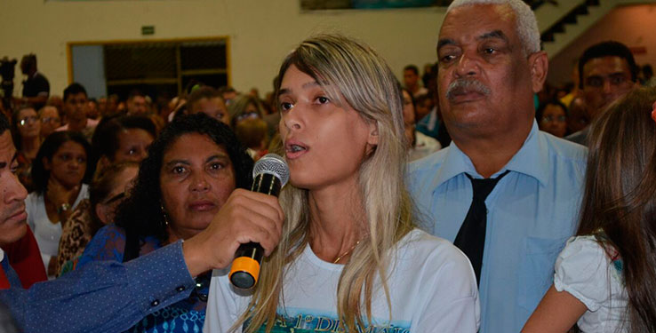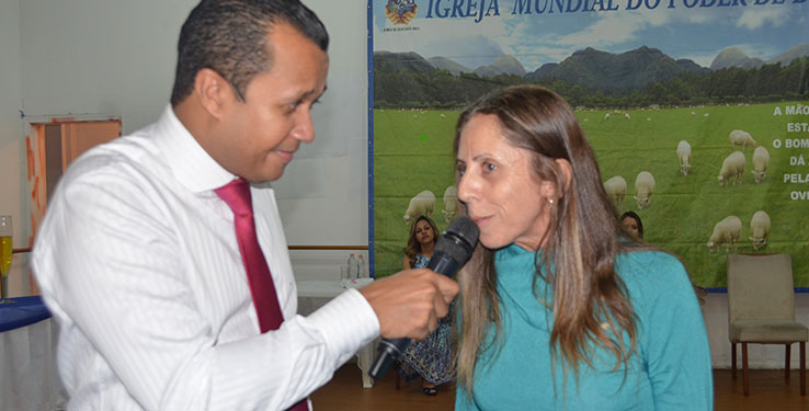 “Após ter vindo numa reunião de obreiros, no mês de junho de 2016, com o bispo Roberto e a pastora Fabiana, bispo Roberto determinou uma benção para mim e disse que meu comércio teria tantos clientes que eu não daria conta.”“Hoje, eu vim na reunião de obreiros para relatar a profecia que aconteceu em minha vida. Estou prosperando tanto que, mesmo não abrindo o comércio, os clientes vão à minha casa pedir o açaí para vender. Tenho outro testemunho para relatar. Minha voz havia desaparecido. Fiz jejum e, quando via as cantoras da Mundial louvando a Deus, eu colocava as mãos na televisão e pedia: ‘Deus, faz minha voz voltar, pois eu preciso dela para Te louvar’. E Deus assim fez. Agora é só vitória em minha vida”