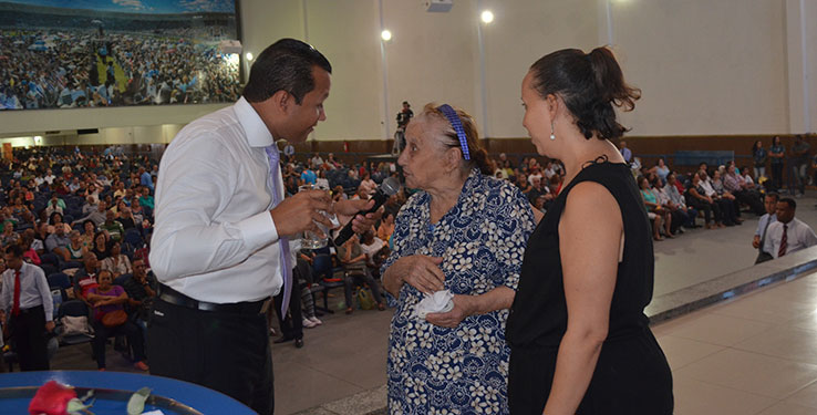 "Estávamos desesperados, quando o tio dele descobriu a obra pela televisão e nos chamou para ver que o Apóstolo Valdemiro Santiago havia abraçado outras pessoas com o mesmo problema e elas foram curadas. O próprio Apóstolo nesse dia desafiava que quem tivesse essa doença, que viesse até a igreja, que Deus resolveria.”